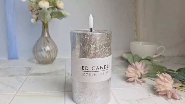 Светодиодная восковая свеча АТМА, серебряная, 'натуральный фитилёк', 12.5 см, таймер, AX5441410
