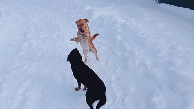 Собачки играют , радуются снегу . VID_2026