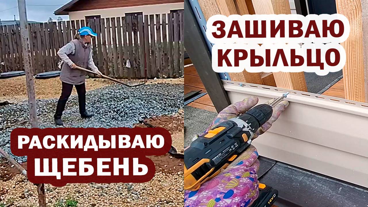 Раскидала кучу щебня | Зашила крыльцо сайдингом | Сделала перестановку в комнате
