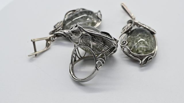 Кольцо и серьги кварц "Фантом" (хлоритовый кварц), размер-16