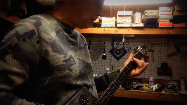 3 String Cigar Box Guitar stained with Ebony stain. Solid one piece Mahogany neck, scarf joint headstock, two drain cover soundholes, galvanized hinge tailpiece, philips head inlays, single volume control, 4 stainless steel deco corners...