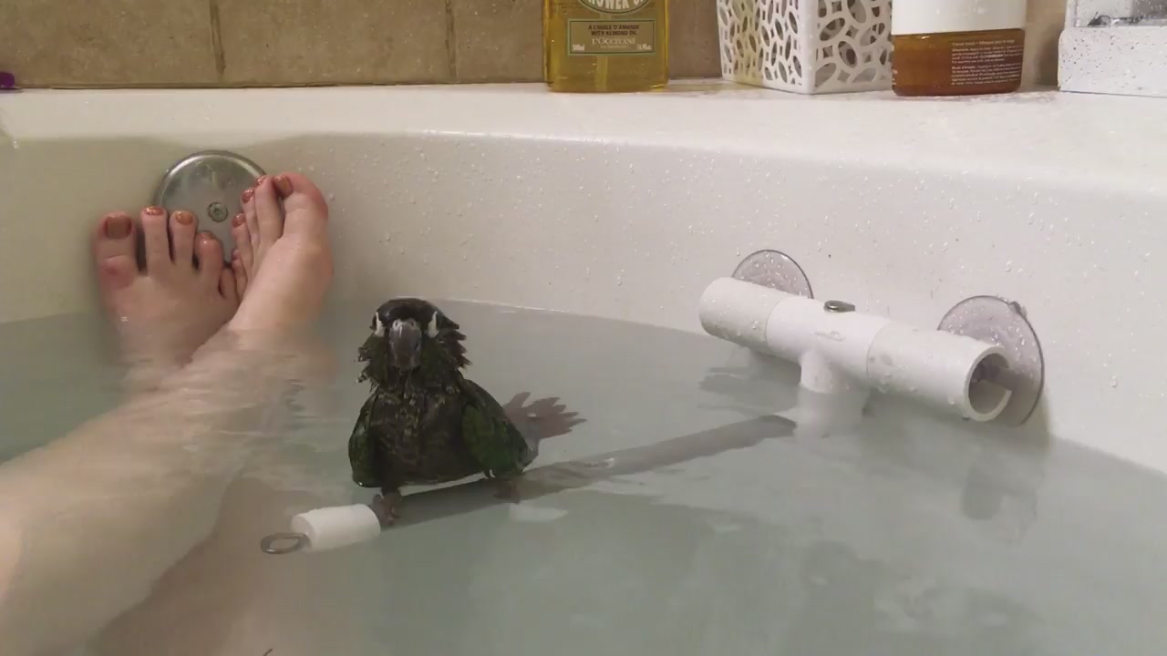 Попугай принимает ванну вместе со своей хозяйкой. #попугай #милота #купание #ванна