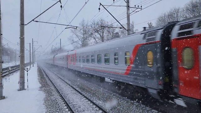 плотный снег и поезд №102 "Сочи" Москва-Адлер под ЭП20-035