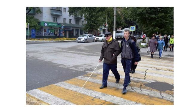 Слепой мужчина на переходе