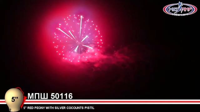 МПШ50116 Высотный залп 5 дюймов 120м 120мм Красный пион с серебрянным пальмовым цветком
