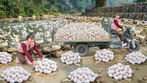 Собираю много утиных яиц на ферме, 6000 уток-несушек. Чтобы продать их на рынке.