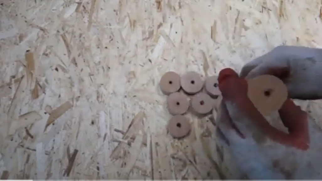Берём несколько кругляшей из ЛДСП и надеваем на шпильку. Снизу ставим подшипник собираем заготовки на шпильку. Закрепляем в патроне сверлильного станка и обтачиваем шлифовальной бумагой. Затем обматываем наждачкой и фиксируем клиньями. Получаем удобное приспособление для шлифовки. #самоделки#приспособления#станок#
