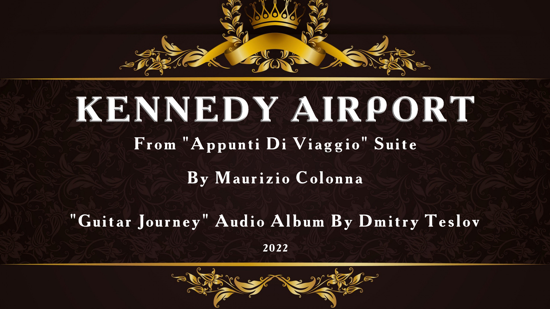 "Аэропорт Кеннеди" ("Kennedy Airport") из сюиты Маурицио Колонна (Maurizio Colonna) "Путевые заметки" ("Appunti Di Viaggio"). Аудиоальбом Дмитрия ТЕСЛОВА "Путешествие Гитары" (2022 г.). Подробно, скачать: http://teslov-music.ru/teslov-audio_guitar_journey_2022.htm. Международный аэропорт в США, расположенный в районе Куинс в юго-восточной части города Нью-Йорка, в двадцати километрах к юго-востоку от Нижнего Манхэттена. Крупнейший среди трёх основных пассажирских аэропортов Нью-Йорка: Ла-Гуардия и Ньюарк. По количеству международных авиарейсов является первым в стране.