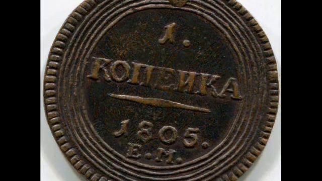Монеты Александра I 1 копейка 1805 года ЕМ.