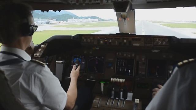 Вид из кабины пилота грузового самолета во время снижения и посадки на ВПП