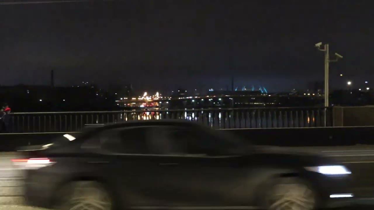 Вдали горят факелы на Ростральных колоннах. Огни над оттаявшей Невой. Среда, 18 января 2023 г.