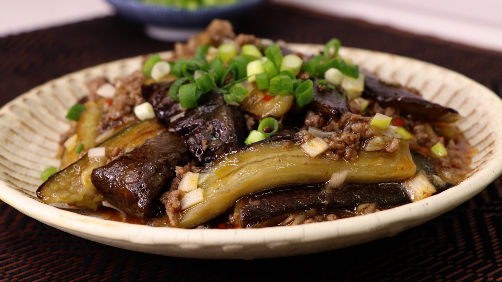 Ингредиенты: Баклажаны - 250-300 г. Фарш - 100г. Чеснок - 1 зубчик Имбирь тертый - 1 ч.л. Вода - 150 мл. Лук Неги/Порей - 10 см. Масло растительное - около 3 ст.л. Соевый соус - 1 ч.л. Устричный соус - 1 ч.л. Острый соус - 2 ч.л. ( я использую Доубанджян) Сахар - 0,5 ч.л. Кунжутное масло - 1 ч.л. Картофельный крахмал - 1 ст.л. Соль - щепотка
