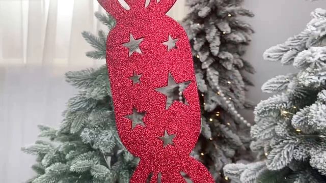 Игрушка для уличной елки Конфета Звездная, красная, 30 см, дерево, D01051-30-крас