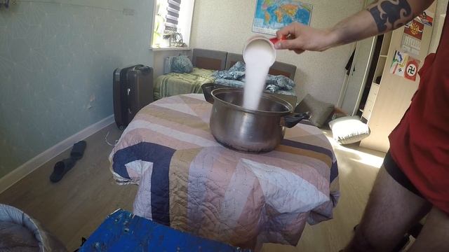 1) 2,5 литра горячей воды 2) 300 грамм сахара 3) Все смешать с сгнившими фруктами.