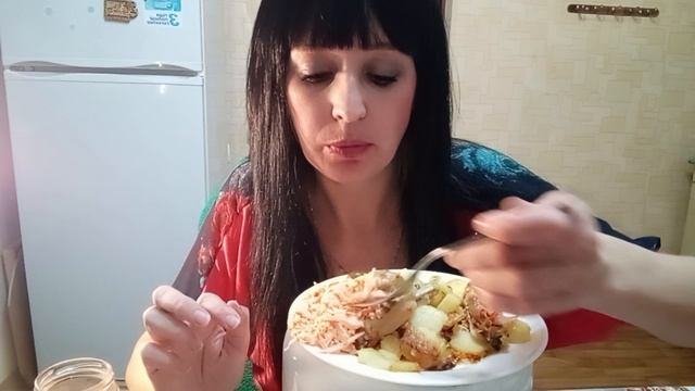 МУКБАНГ/Крылышки с картошкой/Соленые огурцы