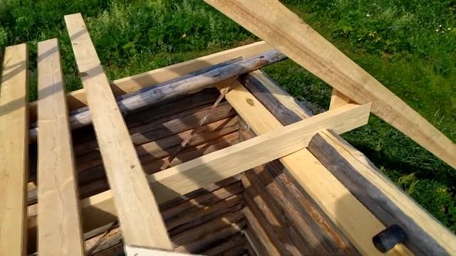 Родовое поместье Ве Лес на Урале, июль 2022. Строю баню 4х4 - установка стропил в одиночку.