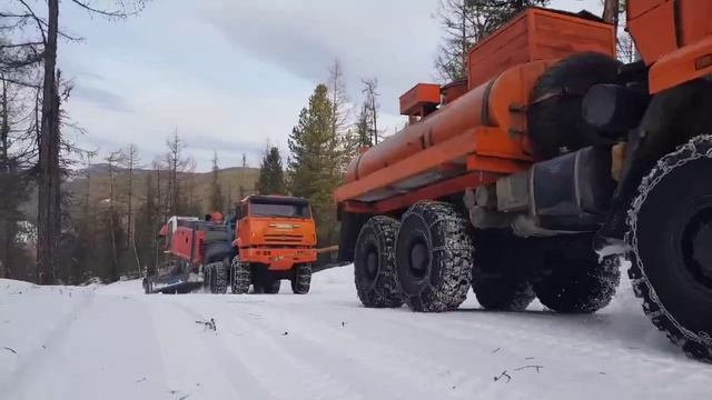 Камазы тащат трал с буровой установкой