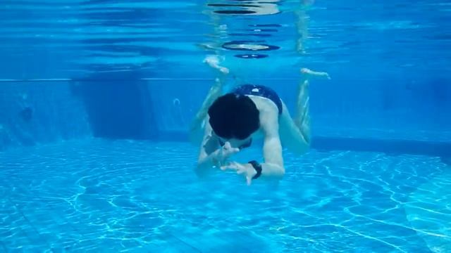 Подводная съемка о том, как Макс ныряет в бассейне.