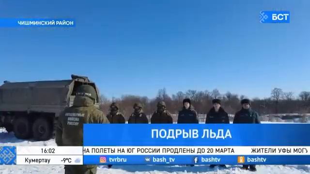 В Чишминском районе провели учения по подрыву льда. По замыслу одному из населенных пунктов грозило подтопление из-за ледяных заторов на реке. Материал телекомпании БСТ