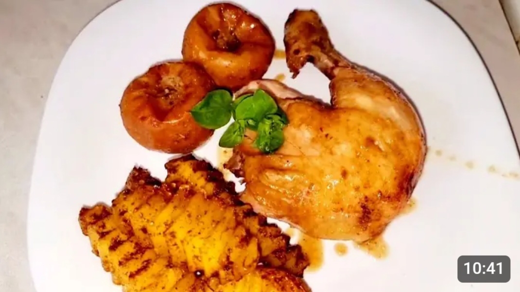 РЕЦЕПТ: КУРИЦА.2,500.кг. Лук.1.шт. Чеснок.4.зуб. Горчица.2.ч.л. Сметана.2.ст.л. Соевый соус.2.ст.л. Мёд.1.ст.л. Адыгейская соль.1.ч.л. Чёрный перец молотый по вкусу. Специи по вкусу. Это тимьян, розмарин,специя для курицы,перец чили, кориандр. Яблоки.1,5.кг. ДЛЯ КАРТОФЕЛЯ: Картофель.1.кг. Чеснок.3.зуб. Сушёный чеснок.1/2.ч.л Чёрный перец.1/2.ч.л. Сушёный укроп.1.ч.л. Паприка.1/2.ч.л. Специя для картофеля.1.ч.л. Подсолнечное масло.2.ст.л. ПРИЯТНОГО АППЕТИТА!🍒ПРОСТО И ВКУСНО!🍒