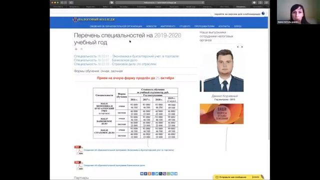 В Налоговом колледже впервые прошел онлайн День открытых дверей. Директор Колледжа Погребная Я.А. и зам. директора Ваняшина Л.В. рассказали об условиях поступления, процессе обучения и ответили на вопросы, интересовавшие абитуриентов