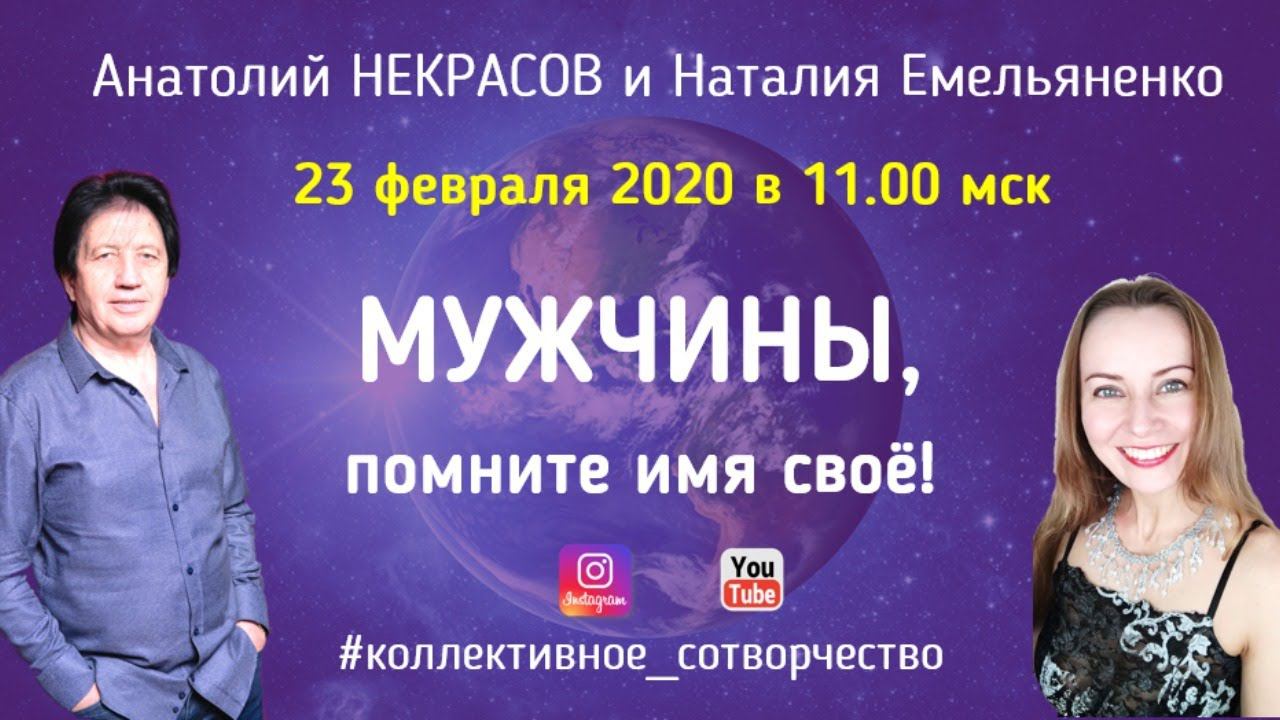23.02.2020 | МУЖЧИНЫ, помните имя своё! | Коллективное сотворчество с А.Некрасовым Ежедневные трансляции медитации по методике А.Некрасова ПУЛЬС СЕРДЦА в 11.00 мск на инстаграм-канале Наталии Емельяненко https://www.instagram.com/n.yemelyanenko_psyholog/ По субботам и воскресеньям на канале Академии А.Некрасова https://www.instagram.com/mae.anekrasov/ Сегодня Анатолий Некрасов представляет (http://anekrasov.ru): 1. Писательскую деятельность http://anekrasov.ru/product-category/knigi/ 2. Консультации, коучинг и форсаж http://anekrasov.ru/konsultacii-i-forsazh-s-anatoliem-nekrasovym/ 3. Международная академия естествознания http://mae.anekrasov.ru