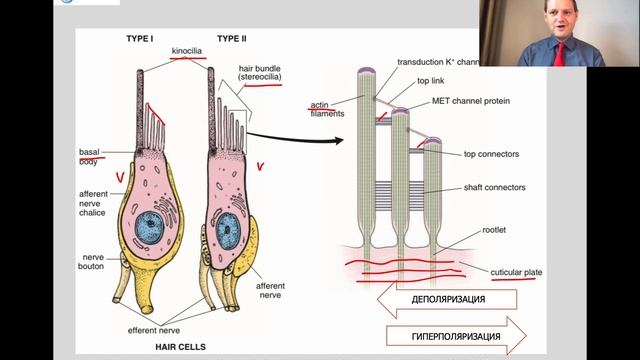 Лекция по частной гистологии по теме "Органы слуха и равновесия. Орган вкуса". Разбираются вопросы эмбриогенез органов слуха и равновесия. Структурно-функциональная характеристика наружного, среднего и внутреннего уха. Гистофизиология волосковых клеток пятен мешочков и ампулярных гребешков. Морфология Кортиева органа. Гистофизиология слуха. Главные механорецепторы, обеспечивающие слух – внутренние волосковые клетки. Внутренние волосковые клетки Кортиева органа деполяризуются при деформации стереоцилий (в результате колебания и смещения базилярной мембраны волнами давления в эндолимфе улиткового протока). На этих клетках заканчивается синапсами 90-95% афферентных нервных волокон улитки. Наружные волосковые клетки обеспечивают механическое избирательное по частоте усиление сигнала, поступающего от Кортиева орган в мозг («улитковое усиление»). Деполяризация наружных волосковых клеток изменяет комформацию потенциал-зависимого трансмембранного моторного белка – престина. Престин связан с латеральной плазмолеммой и оказывает влияние на цитоскелет, что приводит к быстрому укорочению наружных кохлеоцитов, сменяющемуся их удлинением при гиперполяризации мембраны (явление электроподвижности). На наружных кохлеоцитах оканчиваются большая часть эфферентных волокон и 5-10% афферентных. Нейромедиаторами афферентных волокон являются глутамат, эфферентных – ацетилхолин, дофамин, ГАМК. Возникающие поршневидные движения наружных волосковых клеток тянут вниз покровную мембрану и смещают ее по отношению к стереоцилиям внутренних волосковых клеток. Возникает деполяризация внутренних кохлеоцитов, которая по афферентным нервным волокнам передается нейронам спирального ганглия. Аксоны биполярных нейронов спирального ганглия передают нервный импульс к кохлеарным ядрам ствола, к подкорковым слуховым центрам (нижним холмикам крыши среднего мозга, медиальным коленчатым телам, таламусу) и к нейронам коры верхней височной извилины (поле 41 по Бродману). Подробная морфофункциональная характеристика органа вкуса дана в лекции по ротовой полости: https://youtu.be/BXt9QyyhcXs?si=_YCD_NJH_urODtjs тайм-код: 2:35:50 ОРГАНЫ СЛУХА И РАВНОВЕСИЯ (ЛЕКЦИЯ ПО ГИСТОЛОГИИ) https://youtu.be/Zm9WqcmLAnk