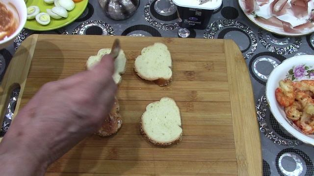Яндекс Дзен - https://dzen.ru/id/620b3fd678237536da3a759a RuTube - https://rutube.ru/channel/24746918/ В контакте https://vk.com/serdukov1974 Рецепт: С беконом: хлеб темный-4 шт,сыр 100 гр,белки от 3 яиц,желтки от 3 яиц.майонез 2 ст л и прованские травы,бекон-4 шт,творожный сыр 4 ст л.листья салата или любая зелень,огурцы свежие 1/2 шт,сыр с плесенью 70 гр.маслины 4 шт,томат черри 4 шт,соленый или маринованный огурец1/2 шт. С лангустинами(креветками) 1.Майонез,кетчуп,сух чеснок 2Хлеб белый-4 шт 3 Креветки обжаренные на сл масле и лим. сок-8 шт 4.Перепелиные яйца-2 шт 5.Икра красная-4 чл 6.Зелень любая(петрушка,укроп) С прошуто: 1.хлеб белый-4 шт 2. сыр моцарелла 3. сыр копченный-8 кругляшков 4. томат желтый-1 шт 5. огурец свежий-1/2 шт 6. прашуто-4 шт 7.зел лук-одно перо С рыбой: 1.Хлеб темный-4шт 2.Творожный сыр-4 ст л 3.Рыба красная-4 шт 4.Рыба масляная-4 шт 5.Яйцо перепелиное-2шт 6.Томат черри-4 шт 7.Огурец-1/2 8.Петрушка зелень 9.Икра красная-2 ч л С анчоусом: 1.Хлеб-4 шт. 2.Сыр творожный-4 ст л 3.Анчоус-4 шт 4.Лук красный-1 шт 5.Яйцо перепелиное-2 шт 6.Томаты вяленные-8 шт 7.Зеленый лук-1 перо