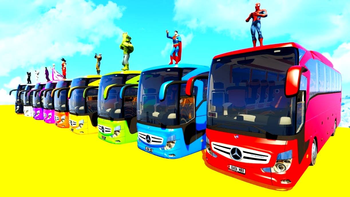 Большие Автобусы и Гидроциклы для Супергероев Мультфильм для Детей с Детскими Песнями