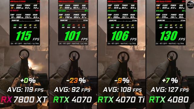 ✔ RX 7800 XT 16GB► https://geni.us/j5ifv ✔ RTX 4070 12GB► https://geni.us/fbLqj ✔ RTX 4070 Ti 12GB► https://geni.us/KdUaH ✔ RTX 4080 16GB► https://geni.us/ZoZB ✔ Ryzen 9 5900X 5TH GEN 12c/24t ► https://geni.us/b0hQNk Thanks for watching & supporting me! ❗Affiliate Links❗ ✅All affiliate links have no additional costs for you✅ 💻 Testing System: • Windows 10 Pro ► https://bit.ly/3n2f81o • CPU ►Ryzen 9 5900X 5TH GEN 12c/24t ► https://geni.us/b0hQNk • CPU Cooler ► AIO MarsGaming ML-ONE360 Black ► https://geni.us/P21JiI • RAM ► Crucial RAM 32 GB (4x8) Dual Channel 3600 Mhz CL 16 ► https://geni.us/sRPNcO • Hard Disk ► Samsung SSD 970 Evo ► https://geni.us/zHOZb • Motherboard ► MSI X570 A Pro Gaming ► https://geni.us/xYuWe • Power Supply ► Gigabyte P850GM 850W ► https://geni.us/GYYIhB • Case ► Hyte Y60 Case Withe ►https://geni.us/ccF39q • Case Fans ► Miwatt RGB Series ► https://geni.us/PpAIGR • Monitor ► Samsung U28E590 4K ► https://geni.us/9QpvaYE • Gaming Keyboard ►Sharkoon Skiller SGK30 ► https://geni.us/ie96lI1 • Videocam ► Sony Vlog-Kamera ZV-1 ► https://geni.us/BBzK6k 🔥Cheap Games on Gamivo.com🔥 https://gamivo.com?glv=aypv5u91 ✅GPU´s / Video Cards✅ ✔ RTX 2060 12 GB► https://geni.us/F1p3u ✔ RTX 2080 8GB► https://geni.us/duzPn ✔ RTX 3050 8 GB ► https://geni.us/mA4XsH3 ✔ RTX 3060 12GB► https://geni.us/RGgG ✔ RTX 3060 Ti 8GB► https://geni.us/K6u0Aw0 ✔ RTX 3060 Ti GDDR6X 8GB► https://geni.us/gxYNeR ✔ RTX 3070 8GB► https://geni.us/iCCnJ ✔ RTX 3070 Ti 8GB► https://geni.us/3UbnB6n ✔ RTX 3080 10GB► https://geni.us/Vtzq ✔ RTX 3080 Ti 12GB► https://geni.us/4LWfSb ✔ RTX 3090 24GB► https://geni.us/7NQ9MB ✔ RTX 3090 Ti 24GB► https://geni.us/J5ctwgD ✔ RTX 4060 Ti 8GB► https://geni.us/x2Ajd3 ✔ RTX 4060 Ti 16GB► https://geni.us/2l9SMhb ✔ RTX 4070 12GB► https://geni.us/fbLqj ✔ RTX 4070 Ti 12GB► https://geni.us/KdUaH ✔ RTX 4080 16GB► https://geni.us/ZoZB ✔ RTX 4090 24GB► https://geni.us/yHOVcy ✔ RX 6600 8GB► https://geni.us/03G8ib ✔ RX 6600 XT 8GB► https://geni.us/PGeLH ✔ RX 6700 XT 12GB► https://geni.us/eZQJsFl ✔ RX 6800 16GB► https://geni.us/Tpfx5v3 ✔ RX 6800 XT 16GB► https://geni.us/UftC ✔ RX 6900 XT 16GB► https://geni.us/HfEG ✔ RX 6950 XT 16GB► https://geni.us/vKQj8mr ✔ RX 7800 XT 16GB► https://geni.us/j5ifv ✔ RX 7900 XT 20GB►https://geni.us/NDfEkuO ✔ RX 7900 XTX 24GB► https://geni.us/FGq3L ✅CPU´s / Processors✅ ✔ Intel i5-11400F 11TH GEN 6c/12t ► https://geni.us/YfGFaew ✔ Intel i5-12400F 12TH GEN 6c/12t ► https://geni.us/so3FCt ✔ Intel i5 10600K 10TH GEN 6c/12t ► https://geni.us/GVGuCI ✔ Intel i5 11600K 11TH GEN 6c/12t ► https://geni.us/4wNpXP1 ✔ Intel i5 12600K 12TH GEN 10c/16t ► https://geni.us/LJYLT ✔ Intel i7 10700K 10TH GEN 8c/16t ► https://geni.us/Smtjc ✔ Intel i7 11700K 11TH GEN 8c/16t ► https://geni.us/ziW6pg ✔ Intel i7 12700K 12TH GEN 12c/20t ► https://geni.us/WqD6U ✔ Intel i9 10900K 10TH GEN 10c/20t https://geni.us/py8g ✔ Intel i9 11900K 11TH GEN 8c/16t ► https://geni.us/Ak4Saew ✔ Intel i9 12900K 12TH GEN 16c/24t ► https://geni.us/JEA8N ✔ Ryzen 5 5600X 5TH GEN 6c/12t ► https://geni.us/1wJKg ✔ Ryzen 7 5800X 5TH GEN 8c/16t ► https://geni.us/lqXb ✔ Ryzen 9 5900X 5TH GEN 12c/24t ► https://geni.us/b0hQNk 0:00 Baldurs Gate 3 0:30 Star Wars Jedi Survivor 1:00 Dead Island 2 1:30 Dead Space 2:00 Fortnite 2:30 Call of Duty Modern Warfare 2 3:00 The Witcher 3 3:30 Total War Warhammer 3 4:00 Cyberpunk 2077 4:30 Redfall Each benchmark run is repeated at least three times. The average value from all three runs is entered into the index. Jeder Benchmark-Durchlauf wird mindestens drei Mal wiederholt. In den Index eingetragen wird der Durchschnittswert aus allen drei Durchläufen. Каждый прогон бенчмарка повторяется не менее трех раз. В индекс вводится среднее значение по всем трем прогонам. RX 7800 XT vs RTX 4070 vs RTX 4070 Ti vs RTX 4080 // Test in 10 Games // 2K - 1440p // Benchmark Теги: benchmark,test,comparison,hardware for gamers,vs,1440p,ryzen 5900x,2k,warzone 2,4k gameplay,fortnite,Cyberpunk,dead space,the witcher 3,rtx 4070 ti,rtx 4080,rtx 4070 vs rtx 4080,rtx 4070 vs rtx 4070 ti vs rtx 4080,redfall,star wars jedi survivor,rtx 4070 ti vs 4080,4070,4080,4070 ti,4070 vs 4080,RX 7800 xt vs rtx 4070,rx 7800 xt,rx 7800 xt vs 4070 ti,rx 7800 xt vs rtx 4080,7800 xt,7800 xt vs 4070,7800 xt vs 4070 ti,7800 xt vs 4080