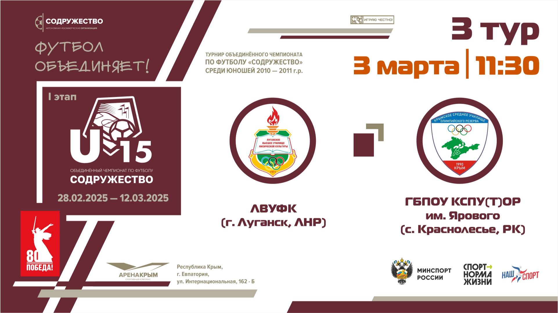 3 ТУР | U-15 | ЛВУФК (г. Луганск, ЛНР) - ГБПОУ КСПУ(Т)ОР им. Ярового (г. Симферополь, РК)