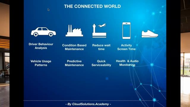 “Internet of Things is a vision where every object in the world has the potential to connect to the Internet and provide their data so as to derive actionable insights on its own or through other connected objects.“ The object can be anything – a vehicle, machinery, airport, city, people, phone or even a shoe. From a connected vehicle solution, you can understand the driver behaviour and vehicle usage patterns, from a connected machines solution you can determine when do machines need servicing, from a connected airport solution you can understand many things like – how much time the passenger needs to wait for check-in and security, from an operational perspective it could help to optimize the passenger movement and ensure the right equipment are available at the right time to ensure quick serviceability and finally say, from a connected footwear solution you can understand how much you have run so far, and your app can automatically purchase a new pair of shoes based on the remaining shoe life. As we can see, it’s not just about connectivity, but how to use the connected data in the context of your application or for that matter of other connected solutions to derive insights which can’t be uncovered before. For more details, visit - https://cloudsolutions.academy/how-to/what-is-internet-of-things/ Technology Bytes Playlist - https://www.youtube.com/playlist?list=PL42TJmsjarLdn-ltpUGhxNkIEUD_RoH2k #iot #digital #iotsensor #internetofthings