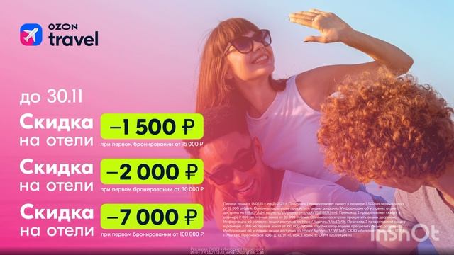 😎 Планируем отпуск со скидкой до 10% Скорее забирай промокод от Ozon Travel и бронируй роскошный отель выгодно! 🤩 Переходи по ссылке для удобства: https://gtblg.ru/kggvoT?erid=2SDnjf1HCQ6 Выбирай промокод на отель: ⭐️ TA3K5LZT — скидка 1 500 ₽ на первый заказ от 15 000 ₽ ⭐️ M85P7JS5 — скидка 2 000 ₽ на первый заказ от 30 000 ₽ ⭐️ UVUEVMKX — скидка 7 000 ₽ на первый заказ от 100 000 ₽ Акция доступна для новых пользователей Ozon Travel на сайте или в мобильном приложении. Действует на отели с датой заезда не позднее 30.11.25