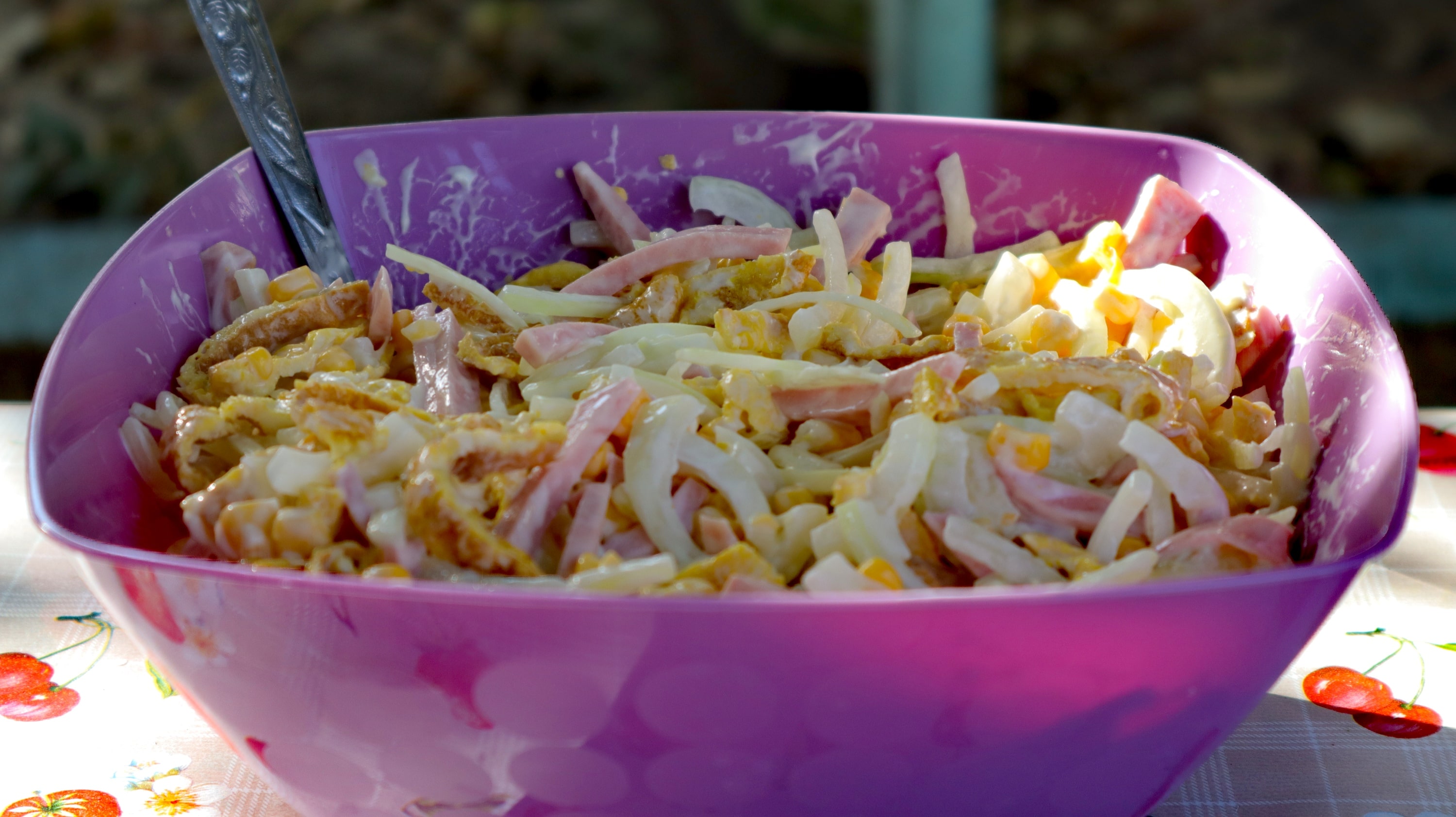Не знаю название салата, но мы его назвали обжорка, Салат с маринованным луком ?