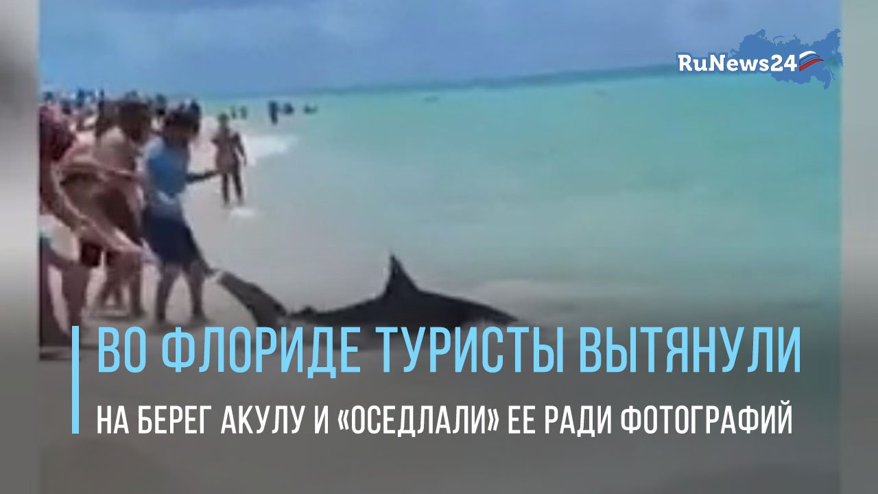 Во Флориде туристы вытянули на берег акулу и «оседлали» ее ради фотографий