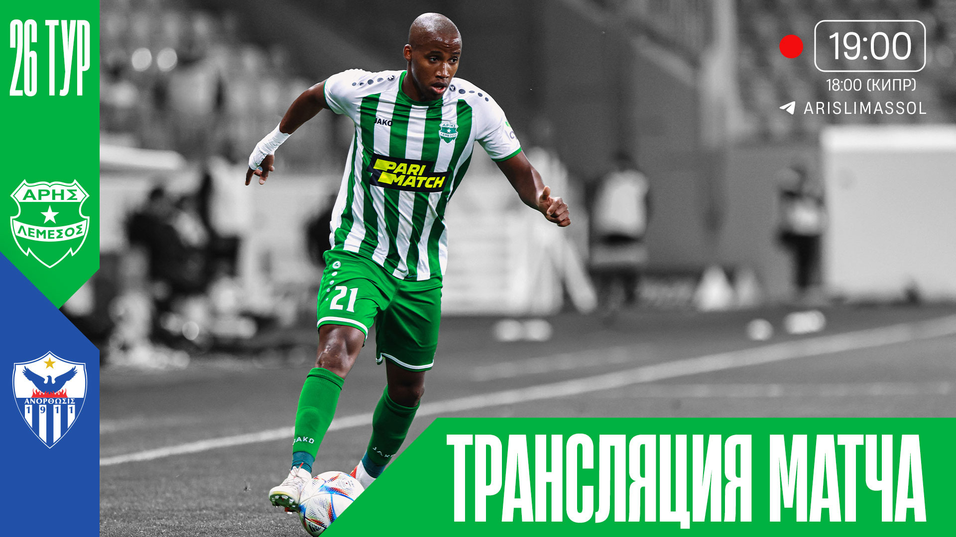 Матч 26-го тура Чемпионата Кипра по футболу. «Арис» играет против «Анортосиса» на «Альфамега Стэдиум» в Лимасоле. Давайте поддержим «Арис» в этом матче! Вперёд, любимая команда! Подписывайтесь на официальный телеграм-канал «Ариса» — t.me/arislimassol