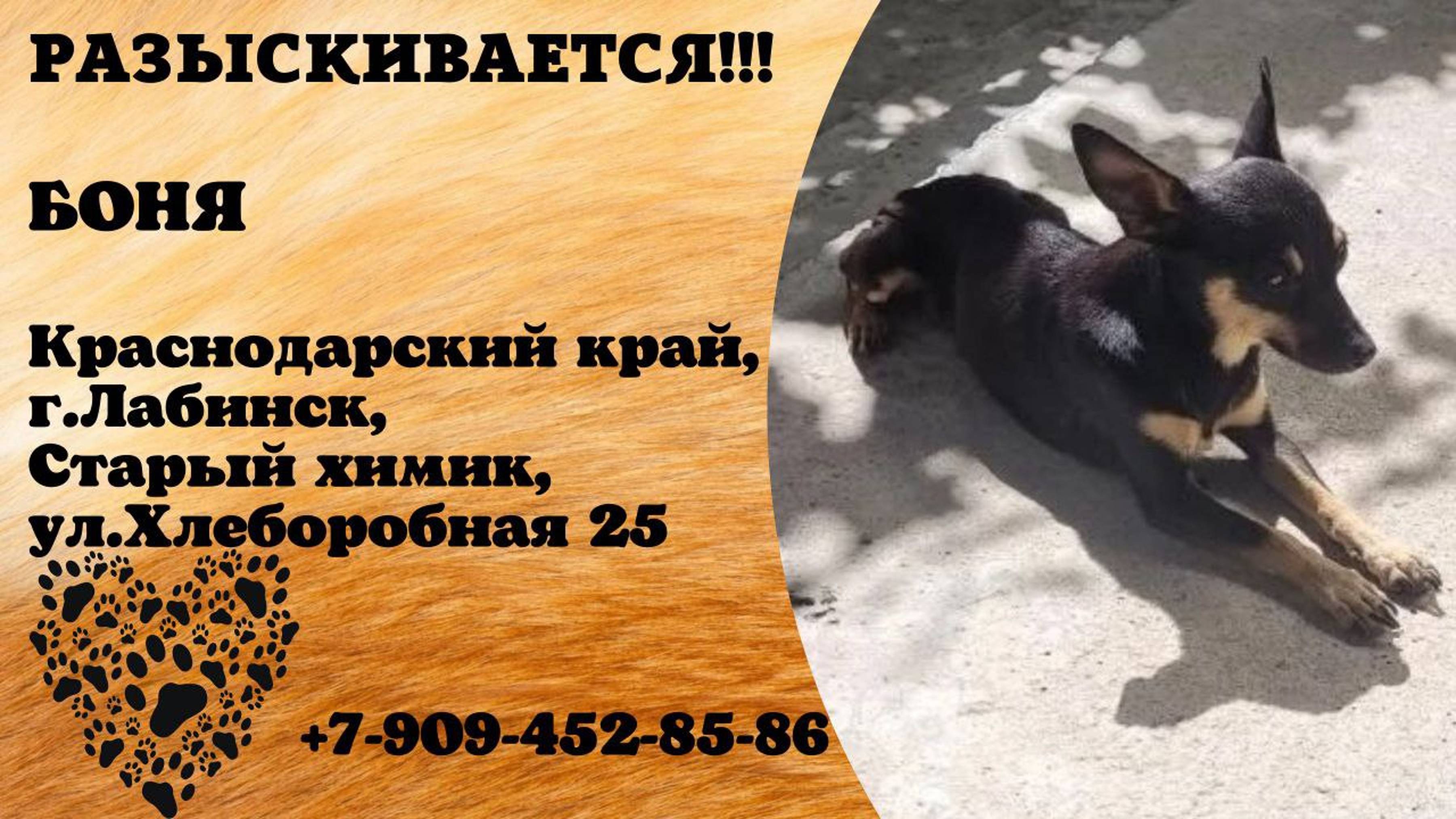 Пропала собака! БОНЯ. Краснодарский край, г. Лабинск