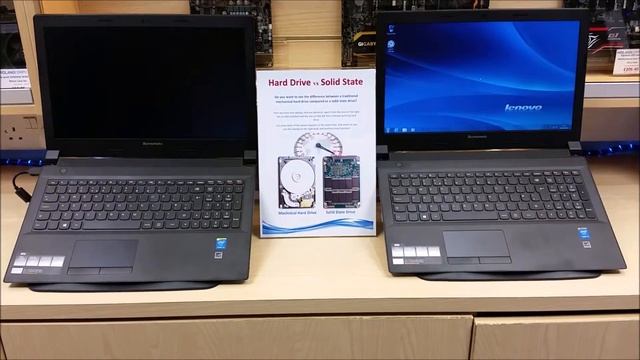Want to see a real live test of SSD (Solid State Drive) v Normal Hard Drive? Course you do - from our showroom based on 2 x Lenovo i3 laptops, exactly the same apart from the drive.