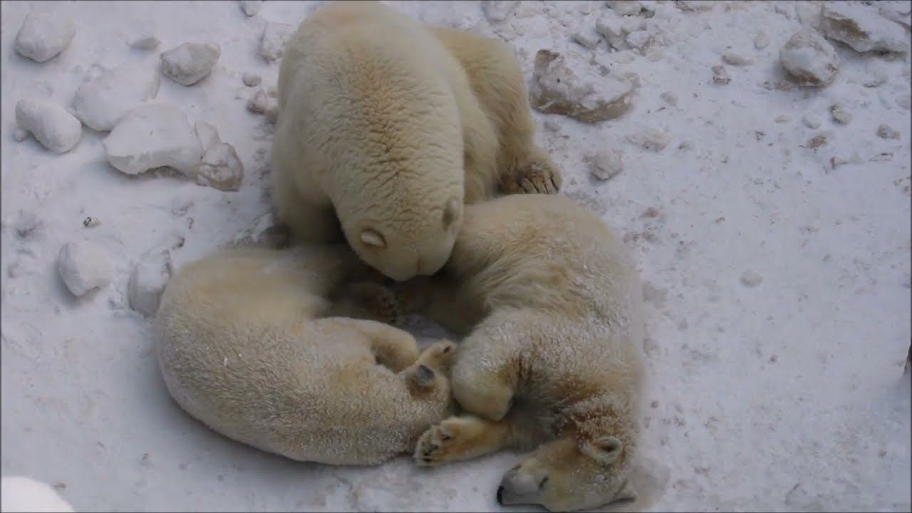 Герда родилась в Москве 20 ноября 2007 года. Её мама Симона, папа Врангель. В Новосибирск переехала 05.08.2008. В 2013 году у Герды и Кая родилась Шилка. В 2015 году она переехала в Японию. В 2015 году родился Ростик. 6 декабря 2018 года он переехал в Китай. В 2018 году родились Норди и Шайна. Данная пара молодых медведей находилась вне экспозиции зоопарка, поэтому посетители не могли их видеть. Передача молодых медведей в другой зоопарк не планируется, — ответили на запрос редакции в пресс-центре мэрии Новосибирска. Но Шайна 20 января 2024 года переехала в Ижевский зоопарк. Белые медведи одиночные животные. Как правило, миролюбивы по отношению друг к другу, но между самцами в брачный период случаются стычки. Взрослые самцы могут нападать на медвежат. Гон с марта по июнь. Продолжительность жизни — максимум 25—30 лет; в неволе рекорд долгожительства — 42 года. Вес очень крупных самцов в некоторых частях ареала 700 и даже 800 кг: есть данные о зверях весом до 1000 кг. Обычно вес меньше. Самки всегда не только меньше, но и значительно легче самцов. Так, самцы в восточной Гренландии в состоянии нормальной упитанности весят 400—450 кг, хорошо упитанные — до 500 кг, самки, даже очень сытые, здесь же редко весят больше 350—380 кг, т. е. их вес составляет около 75% веса самцов. Длина тела на 3-й день после рождения 28—32 см, средний вес — около 755 г (650—840 г). На 26-й день длина тела увеличивается незначительно — до 35—38 см, а вес возрастает до 1125—1275 г. В возрасте 60 дней самцы весят около 7 кг, самки — около 6 кг при длине тела у первых 58—60 см, у вторых 54—58 см. В возрасте 4 месяца медвежата достигают веса 22—23 кг, в 6-месячном возрасте при длине около 110 см — 40—43 кг, в 8-месячном — 58—62 кг. Длина тела в возрасте с 6 до 9 месяцев нарастает по 6—7 см в месяц. Во время зимнего сна рост почти прекращается. В зоопарке медведей кормят утром морской рыбой, хлеб с рыбьим жиром внутри, морковь, яблоки, морская капуста, яйцо дают сырое. Медвежат подкармливают молоком из соски. На ужин мясо (говядина, конина, куры или индейка). Летом и осенью арбузы, дыни, ранетки, кабачки, тыквы, огурцы. Когда показательное кормление летом бросают живую рыбу. Медвежата с медведицей находятся до 2-х лет. 16 декабря 2022 года Герда родила 2-х медвежат. И это две девочки! Имена дали 25 июня. Медвежат зовут Стрелка и Белка. Обзор вольеров белых медведей https://www.youtube.com/watch?v=mAt_b7JD0B4&list=PLGvf0V-rAHxkpGKJaWIZIUxRKgKiqV3xZ&index=17&t=0s
