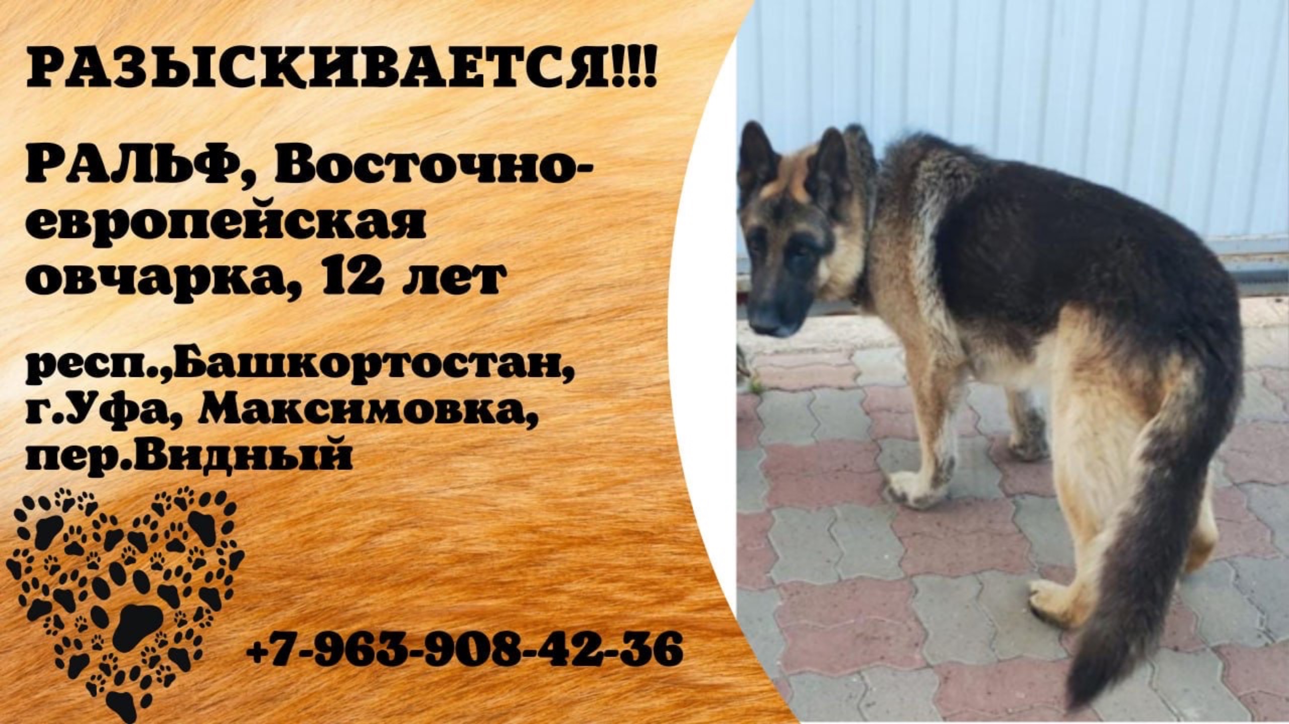 Пропала собака! РАЛЬФ, Восточно-европейская овчарка, 12 лет. респ.Башкортостан, г.Уфа.