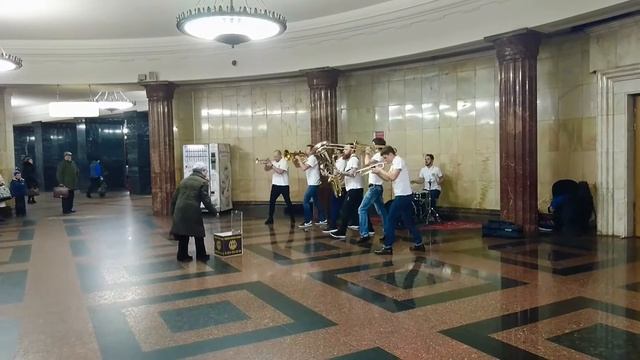 Метро Курская пацаны зажгли,духовой оркестр))