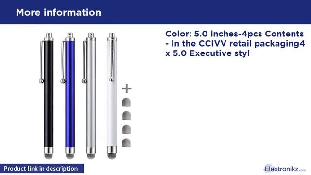 https://electronikz.com/products/jbl-tune-130nc-tws-true-wireless-in-ear-noise-cancelling-headphones-black?tag=electronikzyt-20 Old link : https://electronikz.com/stylusc-ccivv-4-pcs-5-0-inches-hybrid-mesh-fiber-tip-stylus-pens-for-touch-screen-devicesc-ipadc/ Color: 5.0 inches-4pcs Contents - In the CCIVV retail packaging4 x 5.0 Executive stylus4 x Replacable mesh tipscompatiblity:Compatible with all touch screen devices with Mac OS system or Andriod systemspecifications:Material of pen: Stainless steelMaterial of tip: rubberc fiberColors: Whitec Blackc Silverc Bluewhy CCIVV fiber tip stylus:Stainless steel and aluminum without any plastic parts highly improve electrical conductivity.The pen responds with very little pressure and glided over the scre Stylusc CCIVV 4 Pcs 5.0 Inches Hybrid Mesh Fiber T