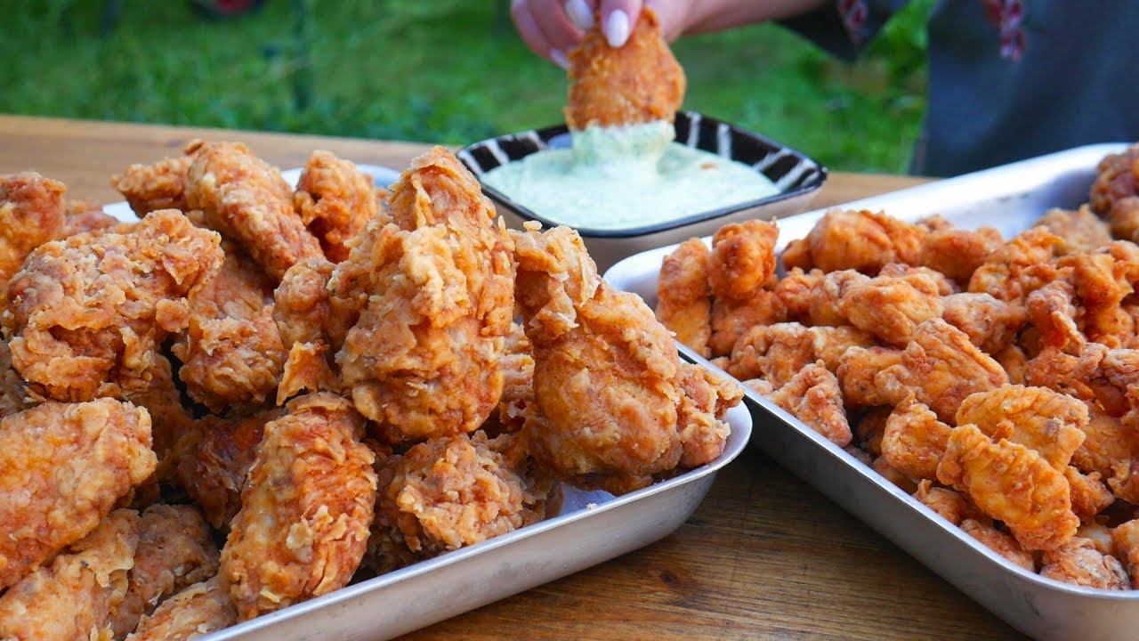 ХРУСТЯЩИЕ КУРИНЫЕ КРЫЛЫШКИ и ПОПКОРН КАК В КФС. ЧЕСНОЧНЫЙ СОУС. РЕЦЕПТ В КАЗАНЕ НА КОСТРЕ.