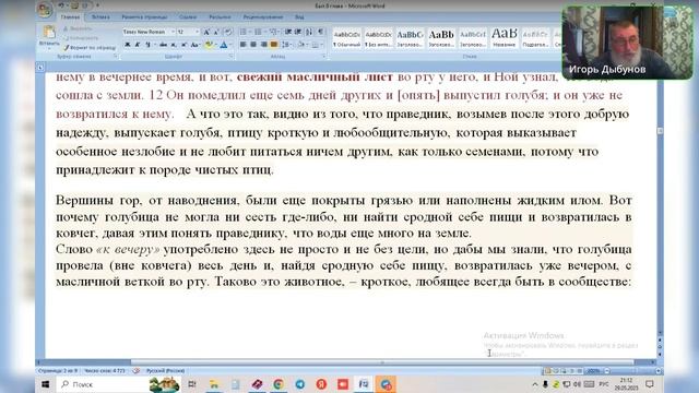 Бытие 8 гл. Убывание воды ( продолжение). Ведущий Игорь Владимирович 29.05.2025