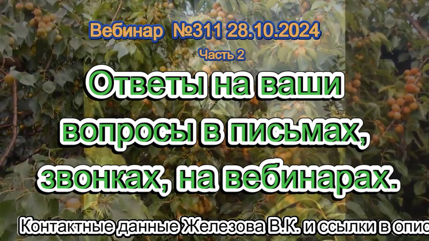 Вебинары Валерия Железова каждый понедельник в 16-00 МСК. Смотреть можно тут: https://start.bizon365.ru/room/lifeonearth/VJ и тут: https://rutube.ru/channel/39471854/videos/ Комментарии и вопросы можно оставлять в гостевой комнате Валерия Константиновича - http://sadsib.narod.ru/gb/ Телефон Железова В.К.: +7 960 776 86 72 Сайт Железова В.К.: https://sad-sib.ru/ Эл. Почта: jelezovsadsib@mail.ru - Группа в ОК - https://ok.ru/jelezovsadsib - Группа в ВК - https://vk.com/jelezovsad - https://zen.yandex.ru/id/5a4727b2168a915b10779daf Чат в WhatsApp: https://chat.whatsapp.com/CuIcxAnKRuh5alIKBuUqHz Чат в Телеграм: https://t.me/+IXSEa_e9wchkZjFi Садоводство по Железову на Youtube: https://www.youtube.com/channel/UCJqMclLm9z4lapERsEM6NPA Садоводство по Железову на Rutub: https://rutube.ru/channel/23786837/ Уральские саженцы от Галины Лотенковой: https://lotenkov.info/#rec537216072