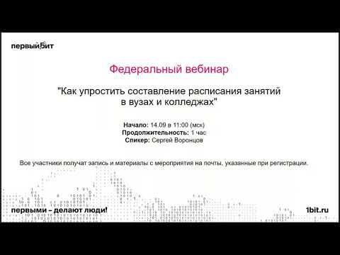 - О решении «БИТ.Расписание.Lite-версия». Возможности использования программы по составлению расписания. - Практическая часть: 1. Ввод аудиторного фонда, настройка модуля для работы (производственные календари, план звонков); 2. Ввод занятий в расписание (список расписаний, источники нагрузки); 3. Контроль коллизий в расписании; 4. Ввод расписания; 5. Неучебные мероприятия; 6. Печатные формы расписания (курса, группы, преподавателя); 7. Отчёты по расписанию (занятость аудиторного фонда, преподавателей, групп); 8. Выгрузка данных расписания для использования во внешних системах. - Ответы на вопросы.