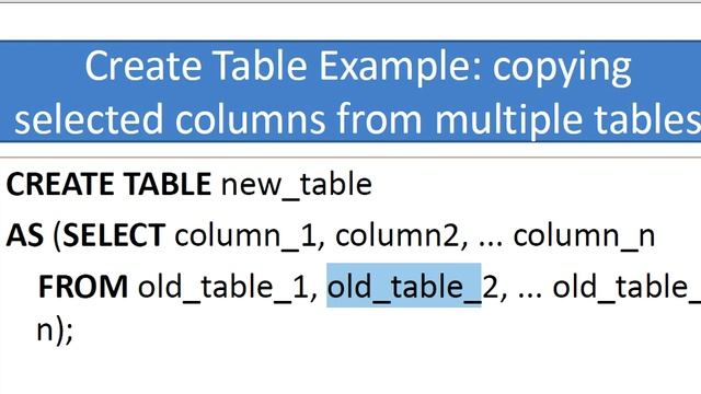 HOW TO CREATE A NEW TABLE FROM AN OLD ONE IN ORACLE. PREVIOUS LECTURE: https://www.youtube.com/watch?v=2hrTz7es13Y