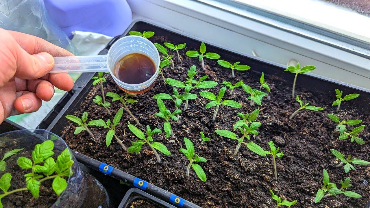 Первая подкормка для рассады помидор. После полива всходы крепнут и жирнеют на глазах!