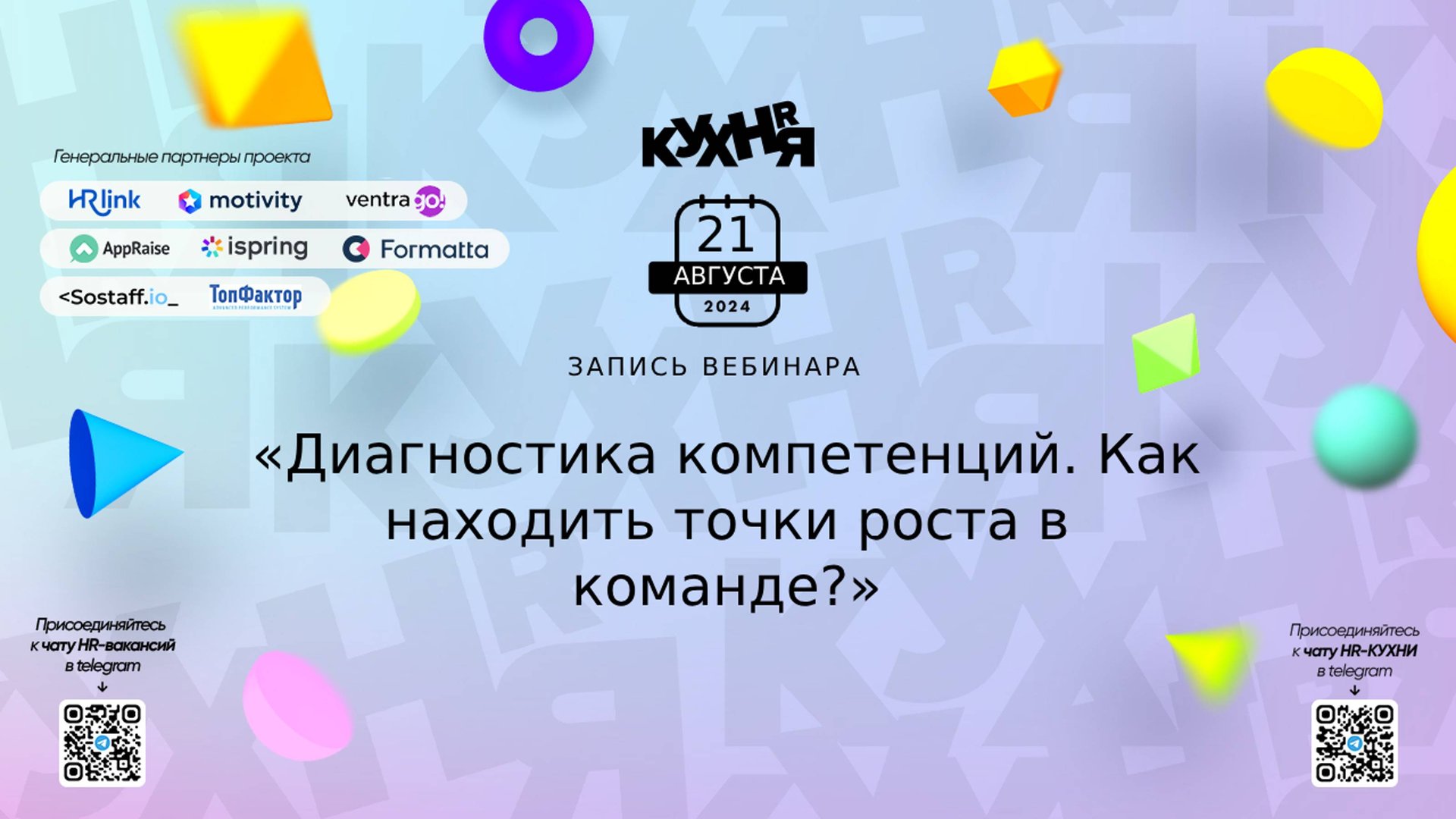 GoTalent - сервис оптимизации работы HR. Делаем рекрутинг эффективнее! GoTalent создаёт и автоматизирует готовые модели компетенций для подбора и оценки сотрудников. Подробнее: https://hrkitchen.click/gotalent Присоединяйтесь к чатам и каналам HR-КУХНИ в телеграм: - Основной чат HR-КУХНИ в телеграм - https://t.me/+tYgAH0PgPQVkOWIy - Канал HR вакансий в телеграм - https://t.me/+CMNAN2u1hjo3M2Ri - Канал HR-EVENTS в телеграм - https://t.me/hr_kitchen - Канал HR JOURNAL в телеграм - https://t.me/hrkitchenjournal Полезные ссылки: - Каталог HR решений - https://hrkitchen.ru/exhibition - График конференций, бесплатных вебинаров, а также бесплатные курсы – https://hrkitchen.ru/ - Стать спикером HR-КУХНИ - https://hrkitchen.ru/speakers - Подписаться на полезную e-mail рассылку от HR-КУХНИ (новости, гайды, чек-листы, подарки от партнеров) - https://hrkitchen.ru/subscribe