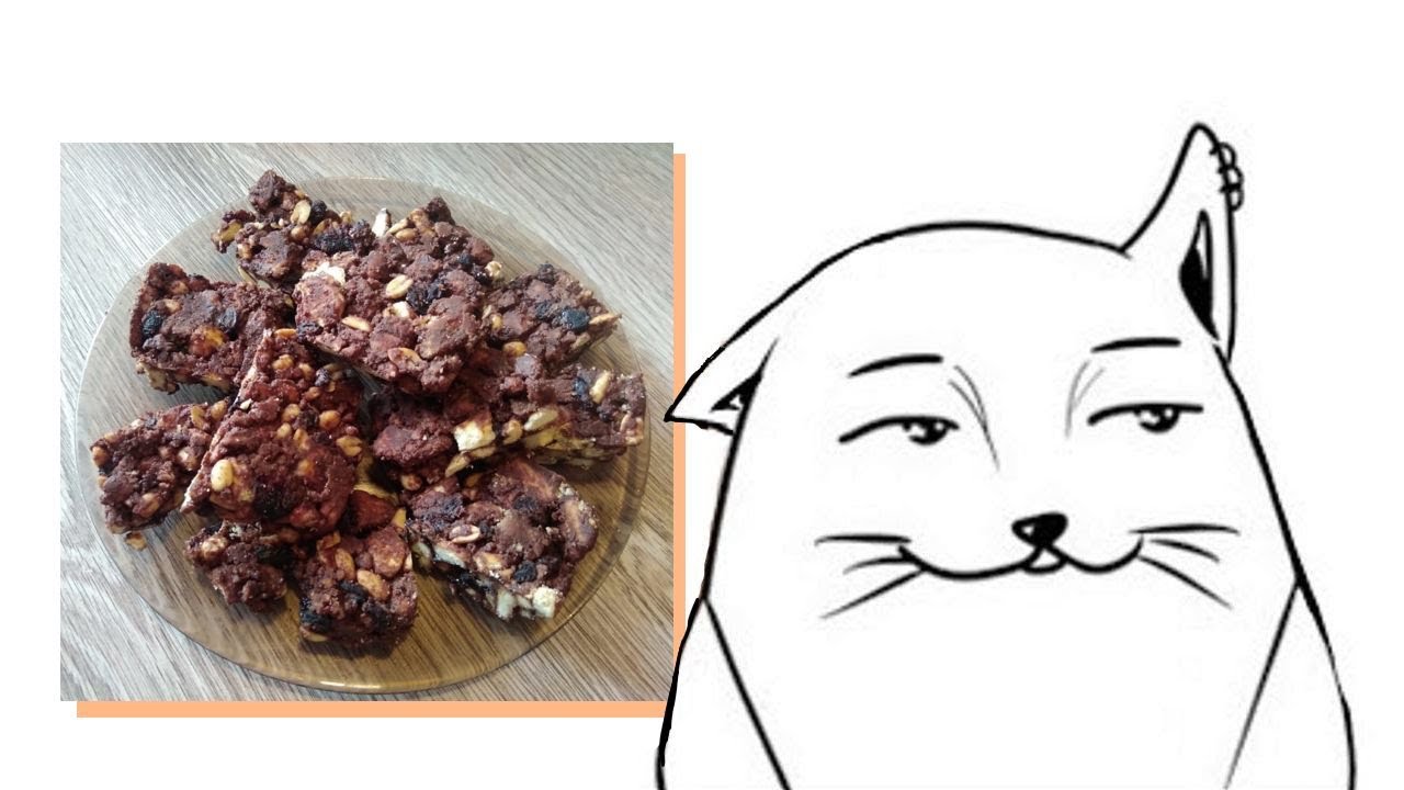 Рецепт: 1) 400 гр. печенье (топленное молоко) 2) 100 гр. сливочного масла 3) 100 гр. соленого арахиса 4) 90 гр. темного шоколада 5) 100 гр. темного изюма В холодильник на 1 час. Хранить в холодильнике.